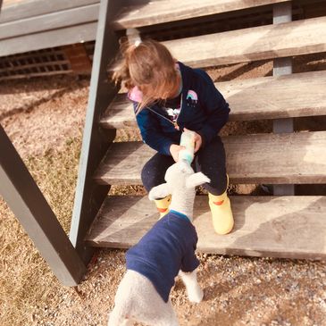Alfie was born on one of the coldest days in 2018. Alfie was born on a farm near by. and unfortunately his mum left him in the cold. So Alfie came to the farm when he was only 3 days old and we had to hand raise him. Secretly he thinks he is a dog more than a sheep. Alfie loves meeting new people especially if you have food.